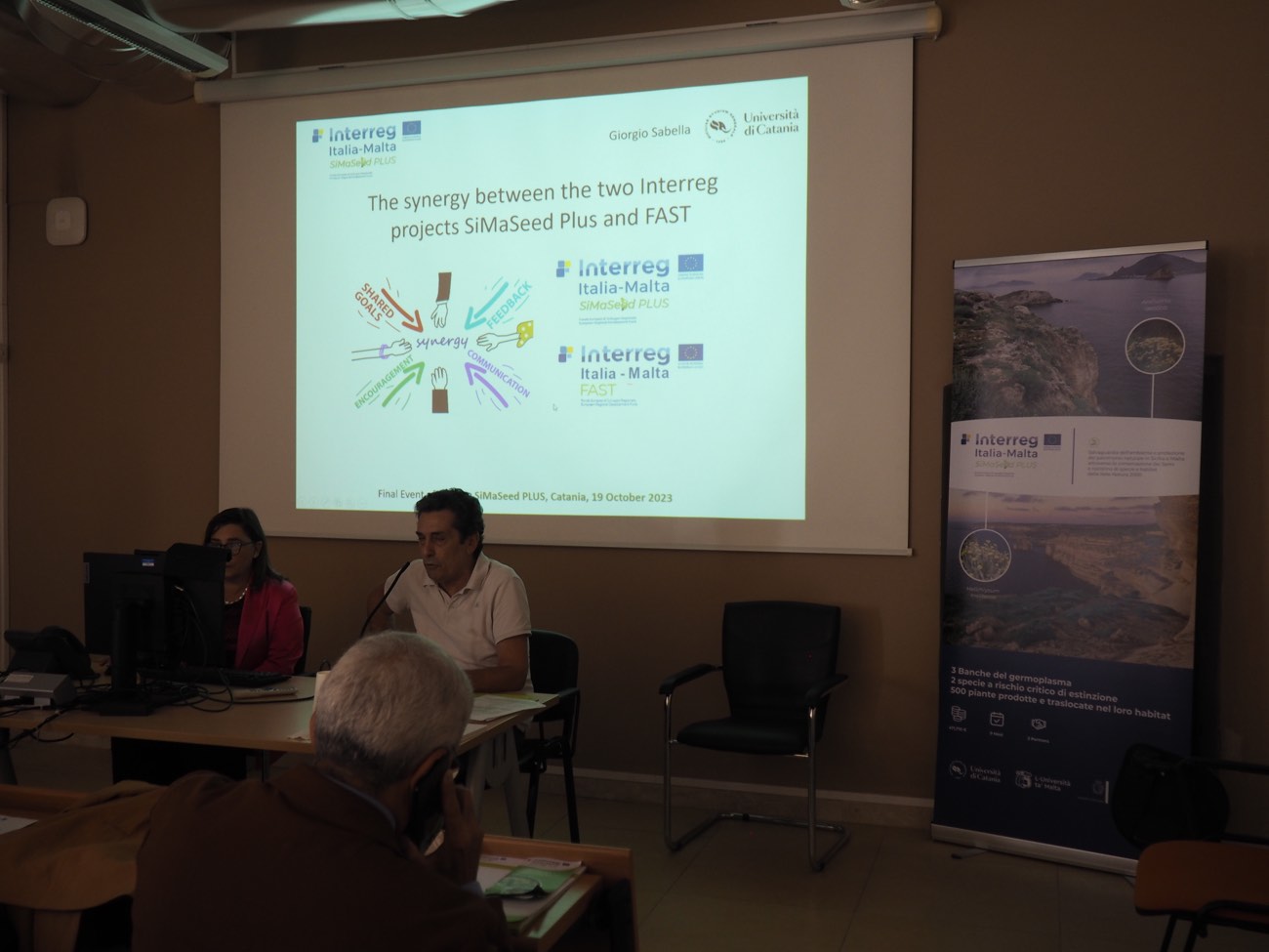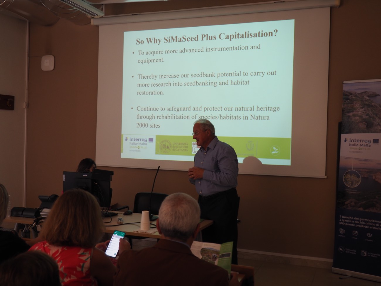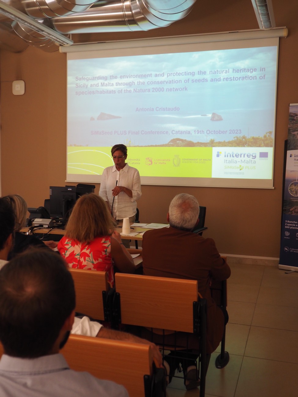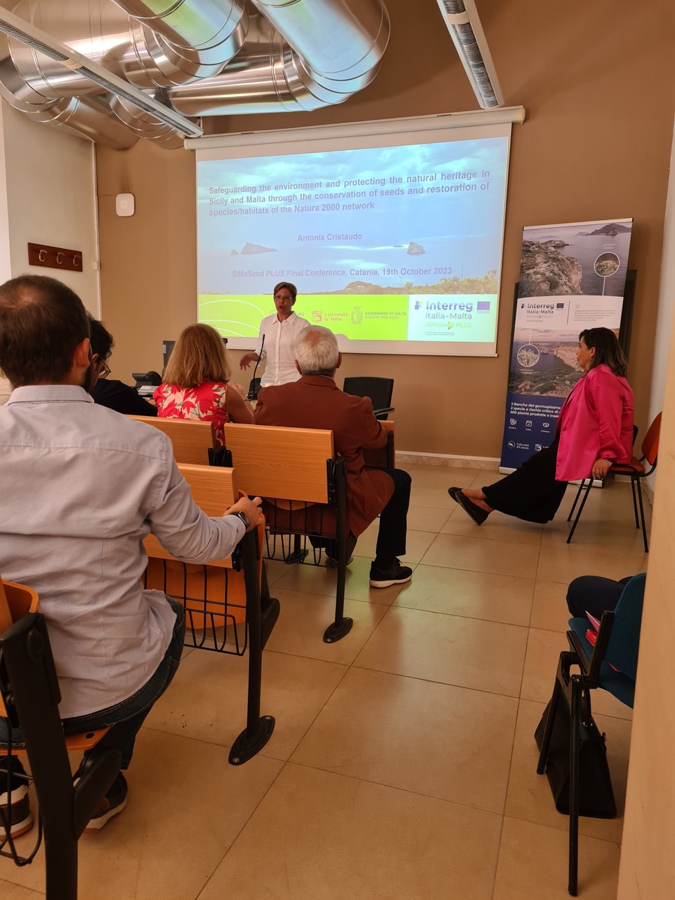 Il 19 ottobre 2023, presso i locali dell’ex Conservatorio delle Vergini al Borgo (via Empedocle, 58, Catania) del Dipartimento di Scienze Biologiche, Geologiche ed Ambientali, si è celebrato l’evento conclusivo del progetto SiMaSeed PLUS. L’evento ha coinvolto i tre partners del progetto, i rappresentanti delle istituzioni locali e gli stakeholders. In questa occasione sono stati illustrati i risultati ottenuti dal progetto nei due territori transfrontalieri (Malta e Sicilia). Nel pomeriggio ha avuto luogo la visita guidata ai laboratori della Banca del Germoplasma e l’inaugurazione della serra di propagazione, acquistata con i fondi di SiMaSeed PLUS. Infine, è stata tenuta la cerimonia di apertura della mostra “SEMI. La vita in attesa”, curata da Lucia Scuderi. L’illustratrice, attraverso 15 acquerelli, ha interpretato le sofisticate architetture di semi di specie della flora siciliana, esaltando i tratti legati alla loro dispersione nello spazio e che permettono alle piante di poter viaggiare. In compagnia di Lucia Scuderi e dei ricercatori della Banca del germoplasma, la mostra si è prolungata sino al 20 ottobre. Nei due giorni dedicati, i numerosi visitatori (oltre 250) sono andati alla scoperta di strutture e colori, familiarizzando con i protagonisti della scena: i semi. Questo intreccio tra arte e natura ha favorito il dialogo con tutti i visitatori che hanno goduto delle tinte forti, dei contorni e delle forme semi.